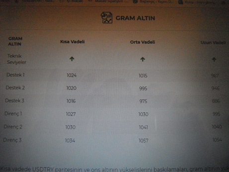Teknik olarak gram altın değerlendirmesi yapıldığında 1008 periyotunun 1006 ve 1012 bölgesini takip ederek yükselişin beklentileri karşıladığı açıkça izlenmektedir. 1006 ve 1012 bölgesinde düşüş isteğinin olmaması beklentilerin pozitif yönlü olmasını sağlamaktadır.